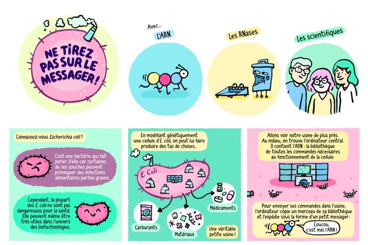 Parce qu’un dessin vaut parfois mieux qu’un long discours, découvrez dans la série BD "Science Story" le projet de recherche RIB-ECO visant à optimiser l’efficacité énergétique des cellules pour des applications en biotechnologie, coordonné par Muriel Cocaign-Bousquet, chercheuse INRAE au laboratoire Toulouse biotechnology institute (TBI) du centre INRAE Occitanie-Toulouse.