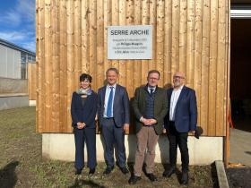 En présence d’Eric Jalon, préfet de Corse, d'Elisabeth Claverie de Saint Martin, PDG du Cirad et de nombreux acteurs de la filière, Philippe Mauguin, PDG d’INRAE et André Torre, président du centre INRAE de Corse, ont inauguré la nouvelle infrastructure baptisée ARCHE. Un siècle après l’arrivée du premier clémentinier en Corse, les équipes scientifiques d’INRAE et du Cirad chargées de la gestion du centre de ressources biologiques Citrus pourront désormais mettre à l’abri la collection génétique de plus de 1 000 accessions.