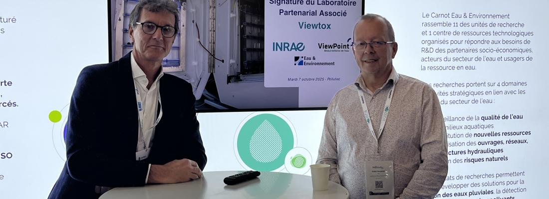 Signé officiellement lors du salon Pollutec 2025, le 7 octobre, le renouvellement du Laboratoire partenarial associé (LPA) ViewTox entre INRAE, unité RiverLy et ViewPoint Biosurveillance de l’Eau marque une nouvelle étape dans le développement d’approches innovantes pour la biosurveillance en temps réel de la qualité de l’eau.