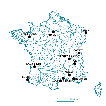 • 5 sites académiques : Lyon, Rennes, USMB (limnologie) et Avignon Université (hydrogéologie)