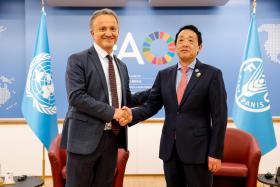 Invited by the Food and Agriculture Organization of the United Nations (FAO) to the opening session of its 2025 Science and Innovation Forum, Philippe Mauguin, Chair and CEO of INRAE, reaffirmed the central role of science and innovation in transforming agricultural and food systems in response to global crises. On the sidelines of the Forum, he held bilateral meetings with several senior officials, including FAO Director-General Qu Dongyu, Thanawat Tiensin, Director of the Animal Production and Health Division, and Lynnette Neufeld, Director of the Food and Nutrition Division. Discussions focused on strengthening scientific cooperation, particularly on food security, nutrition and animal health, and on INRAE’s contribution to implementing the FAO–CIRAD–INRAE–IRD partnership signed in 2022.
