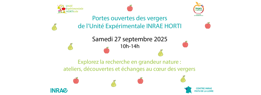 L’unité expérimentale INRAE Horticole ouvre exceptionnellement ses vergers au grand public le samedi 27 septembre de 10h à 14h dans le cadre de l'événement "Vergers ouverts" organisé par le label "Vergers écoresponsables" porté par l’ANPP (Association Nationale Pommes Poires).