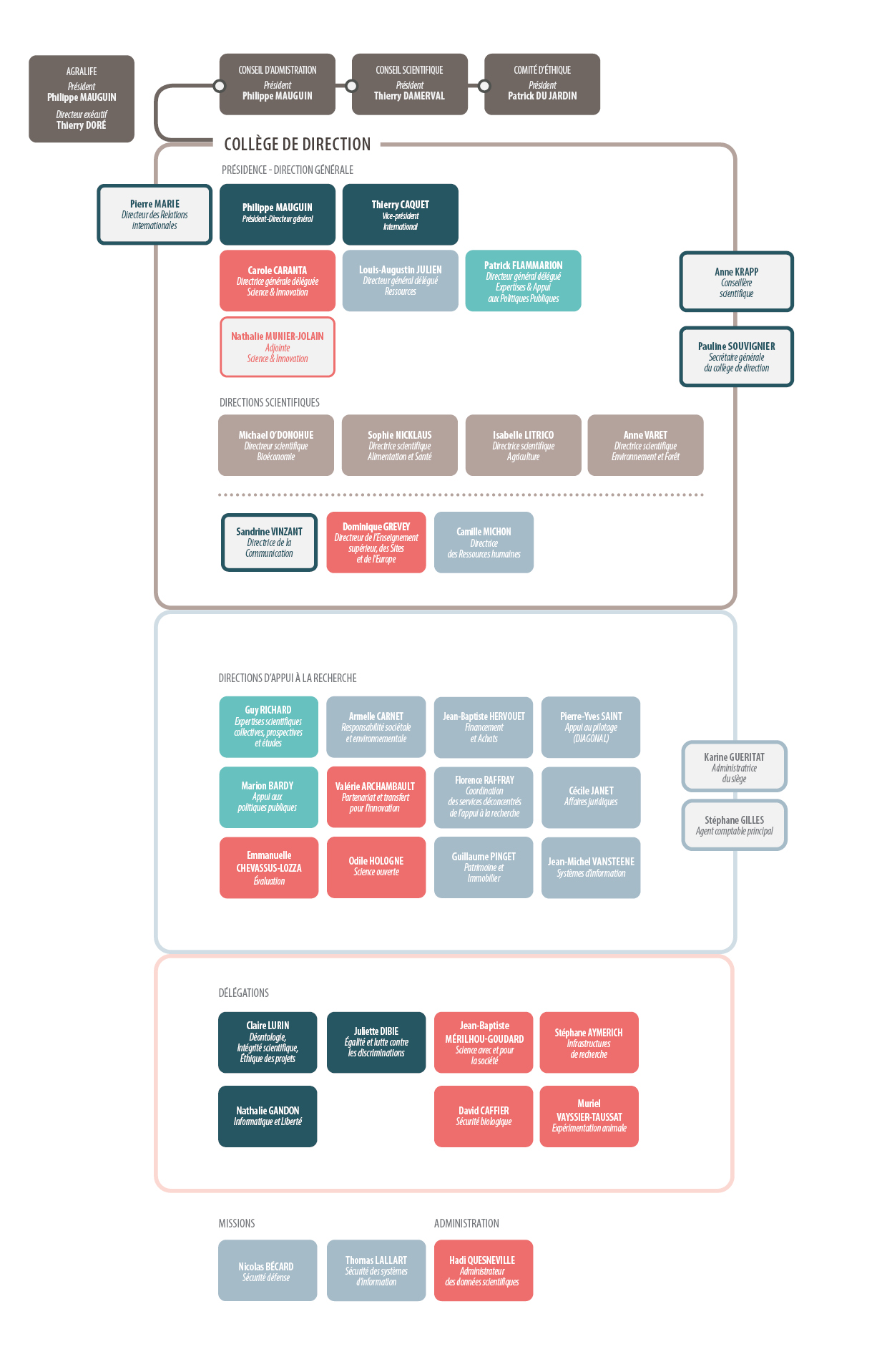 Pour accéder au récapitulatif des nominations au sein de l’institut et des délégations de signature et/ou de pouvoirs afférentes, depuis la création d'INRAE au 1er janvier 2020 consulter la page Nominations & Délégations à INRAE